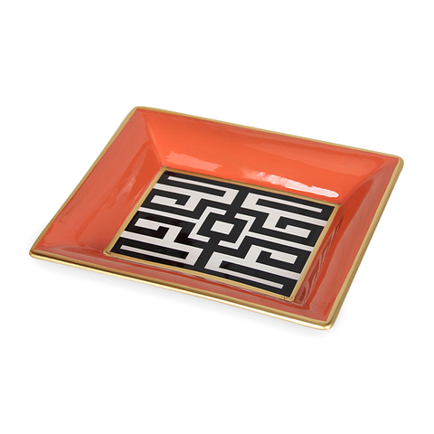 AST009 Porcelain 7.8 Inch Cigar Ashtray Ceramic Decorative square Plate Luxury Orange Candy Tray for Home Decor